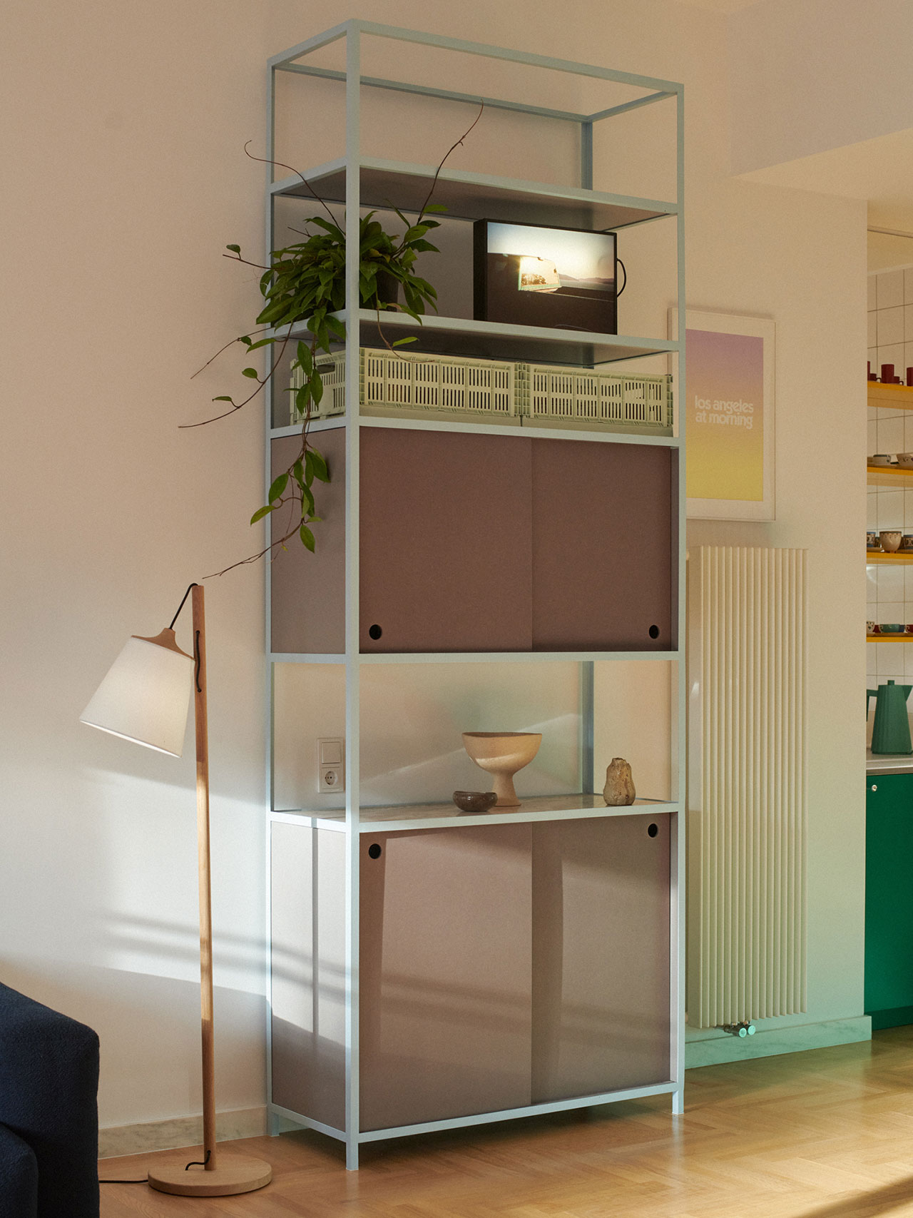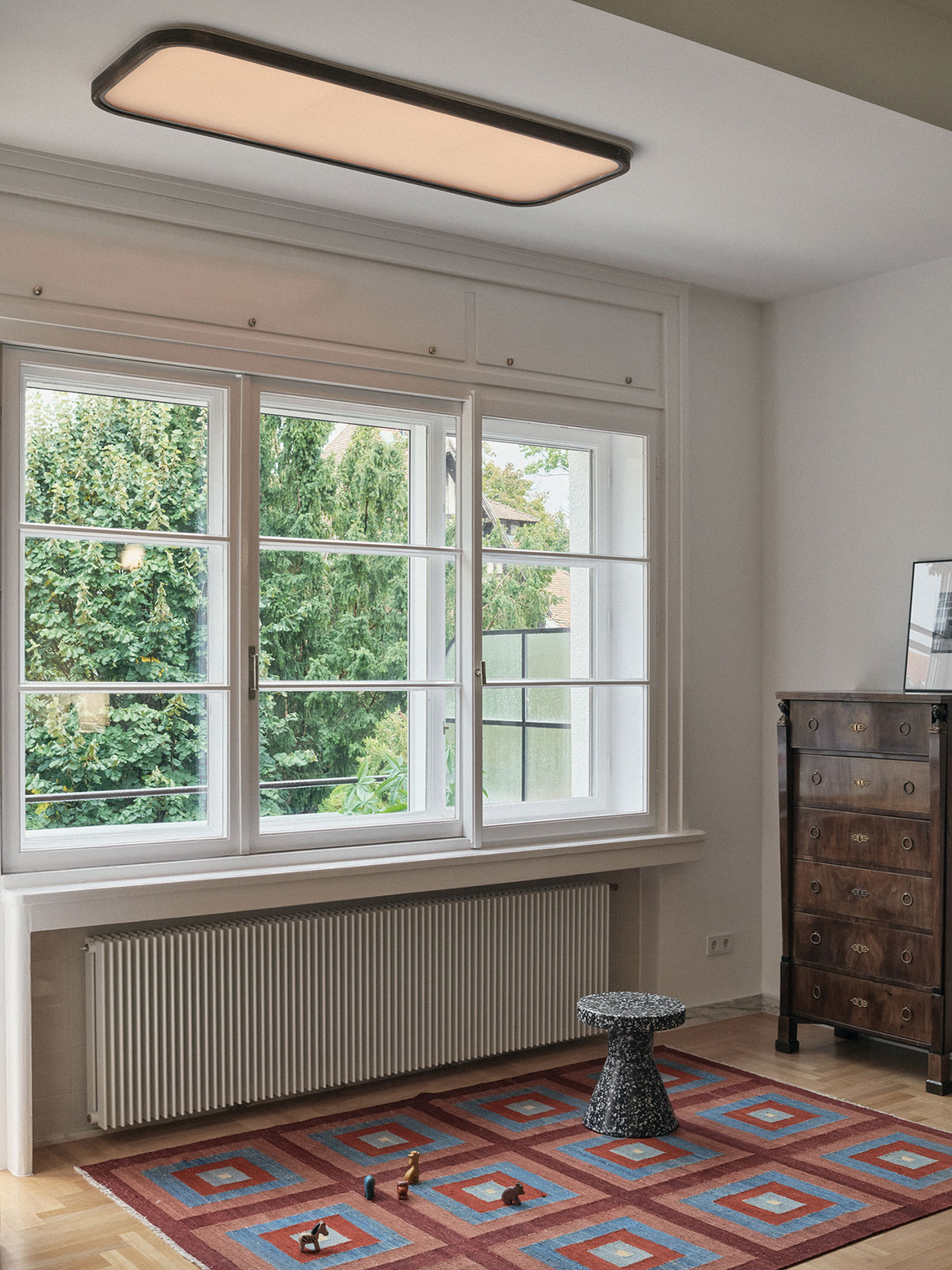 For Huttl, this project is deeply personal. Her grandparents’ summer house – with its striking metal-framed glass facades – shaped her design sensibility early on. And her grandmother, an architectural historian specializing in Bauhaus, instilled in her a lifelong admiration for the movement’s philosophy. In this apartment, those influences merge beautifully. It’s both a tribute and an evolution: a way to live with the ideals of Bauhaus, not as a museum piece, but as a warm and joyful part of everyday life.
