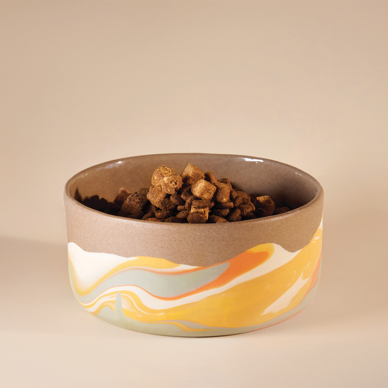 Matching with our dogs isn’t a groundbreaking concept – there’s no shortage of leashes, beds, and even actual outfits we can choose from to coordinate with our interior and personal styles. But matching homewares? Now that’s a fresh idea, brought to life by dog-loved brand Kismet and Brooklyn-based ceramicist Helen Levi. Together, they’ve crafted a limited-edition collection of mugs for humans and dog bowls for their four-legged friends, each featuring Kismet’s signature color palette and Levi’s distinctive swirls. No two pieces are alike – just like your dog.