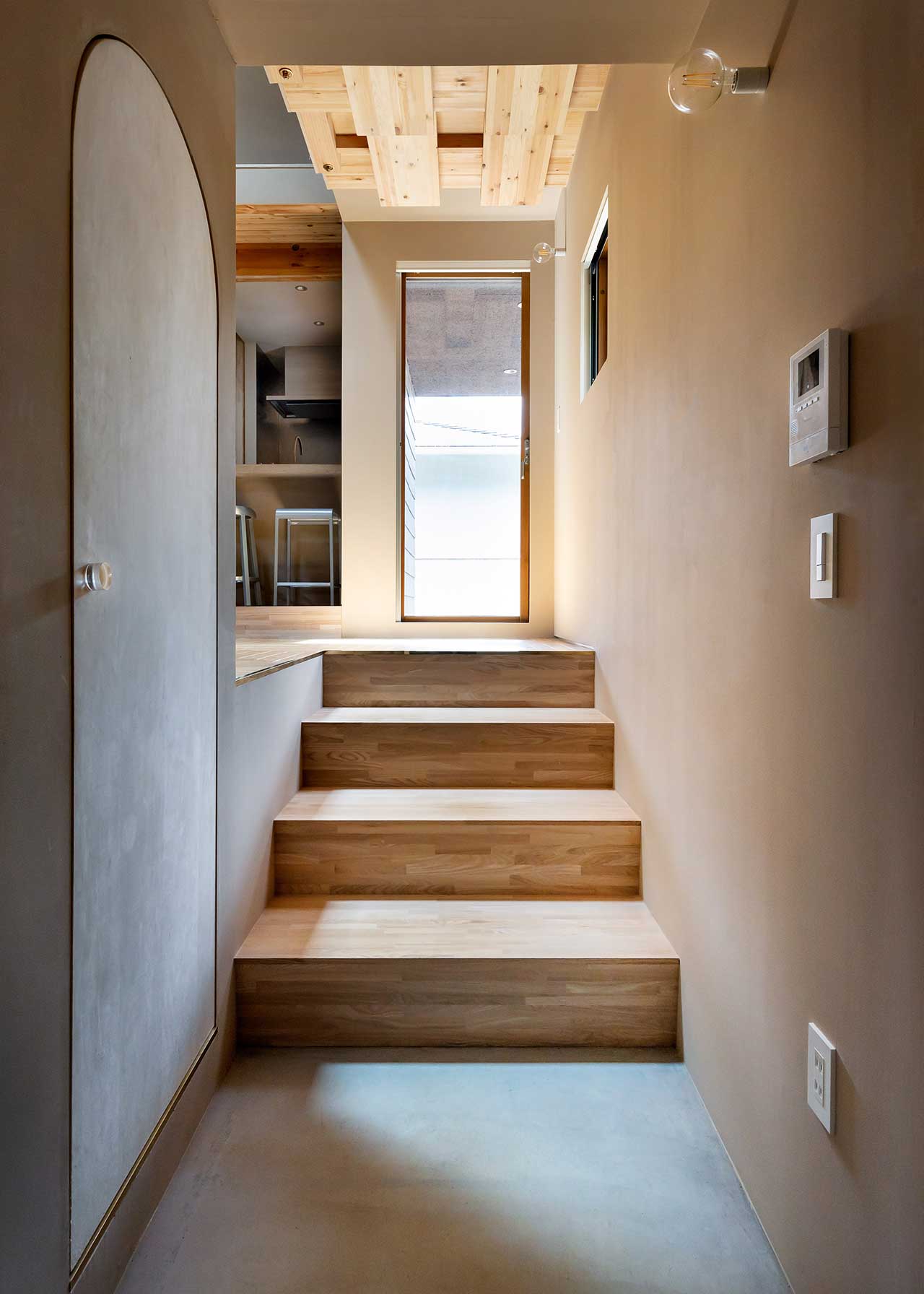 The spiral staircase is a cantilever design, reminiscent of the tamasudare, a loosely woven bamboo screen used in traditional Japanese street performances. It not only serves as a functional design element but also adds an artistic touch to the space. It helps control humidity in the humid Kamakura environment.