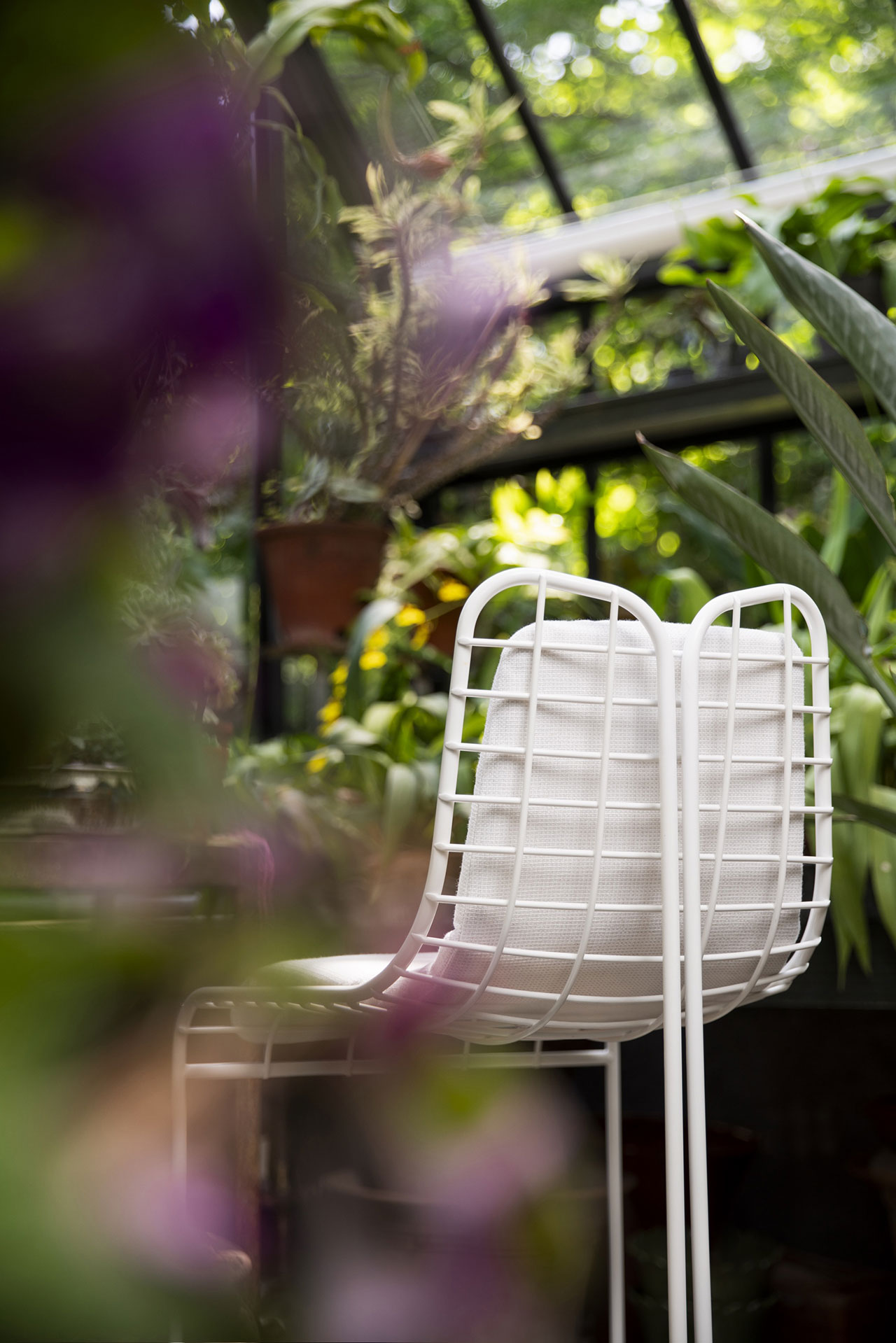 For the “kinetic” Capricorn Chaise Lounge, a flowing back leg was added to better support the single wheel configuration, preserving the integrity of its lines and custom reproducing the wheel’s exact form. The new collection also comprises a sofa, lounge chair, bistro table, bar stool, round dining table, square dining table, dining chair, cocktail table, and two-tiered end table.