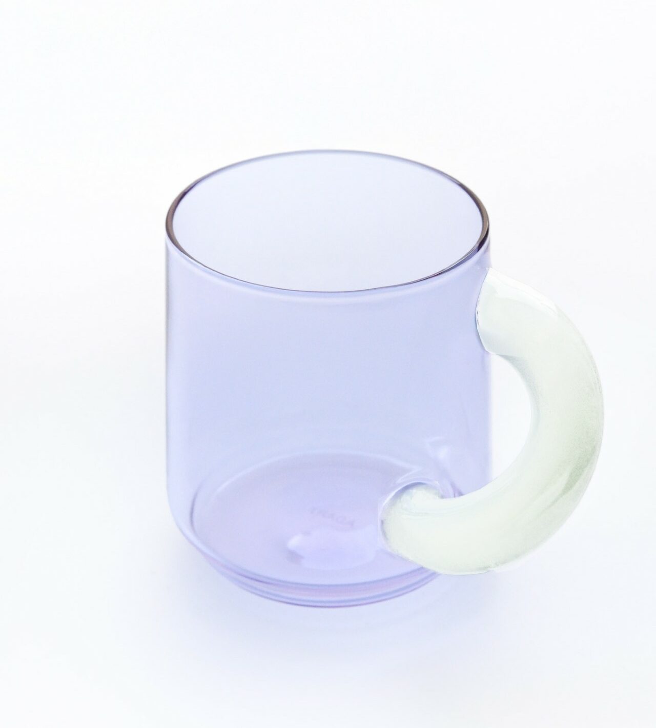 Crafted from temperature-resistant borosilicate glass and hand-finished to perfection, the 320 ml mug comes in three colorways: clear, lilac with a white handle, and green with a black handle. “There’s something captivating about transparency – seeing the color of your coffee or tea, the warmth inside the glass. That’s why I love working with borosilicate glass; it lets us explore that sensory side,” Nikolovski adds. Even better, the Mario Mug stacks beautifully, the angled handles creating a playful rhythm when gathered together.