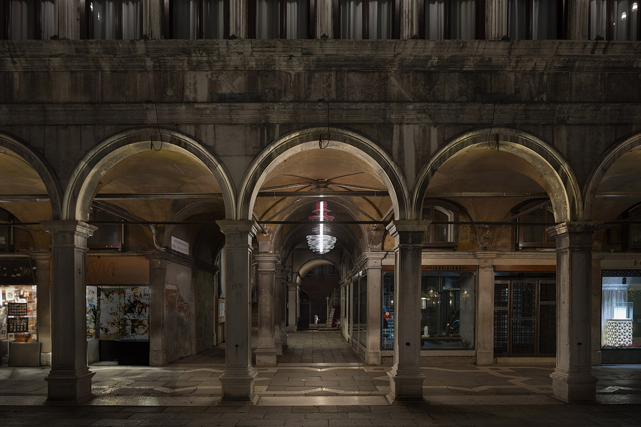 The Profilo Chandelier by Luca Nichetto – an ethereal fixture designed in collaboration with Barovier&Toso, where he now serves as the recently appointed Artistic Director – lights up the arcade at Piazza San Marco’s Procuratie Vecchie, a sixteenth-century square formed by three connected buildings in the heart of Venice. Despite a history of damage by fire and war, the facade stands strong in 2025. It serves as a beautiful backdrop for Profilo as part of Murano Illumina il Mondo, an initiative Nichetto was invited to participate in by Venice Glass Week and the City of Venice. Profilo reimagines the classic glass chandelier for today, bringing together traditional craftsmanship and modern technology in a way that honors Murano’s heritage while looking toward the future.