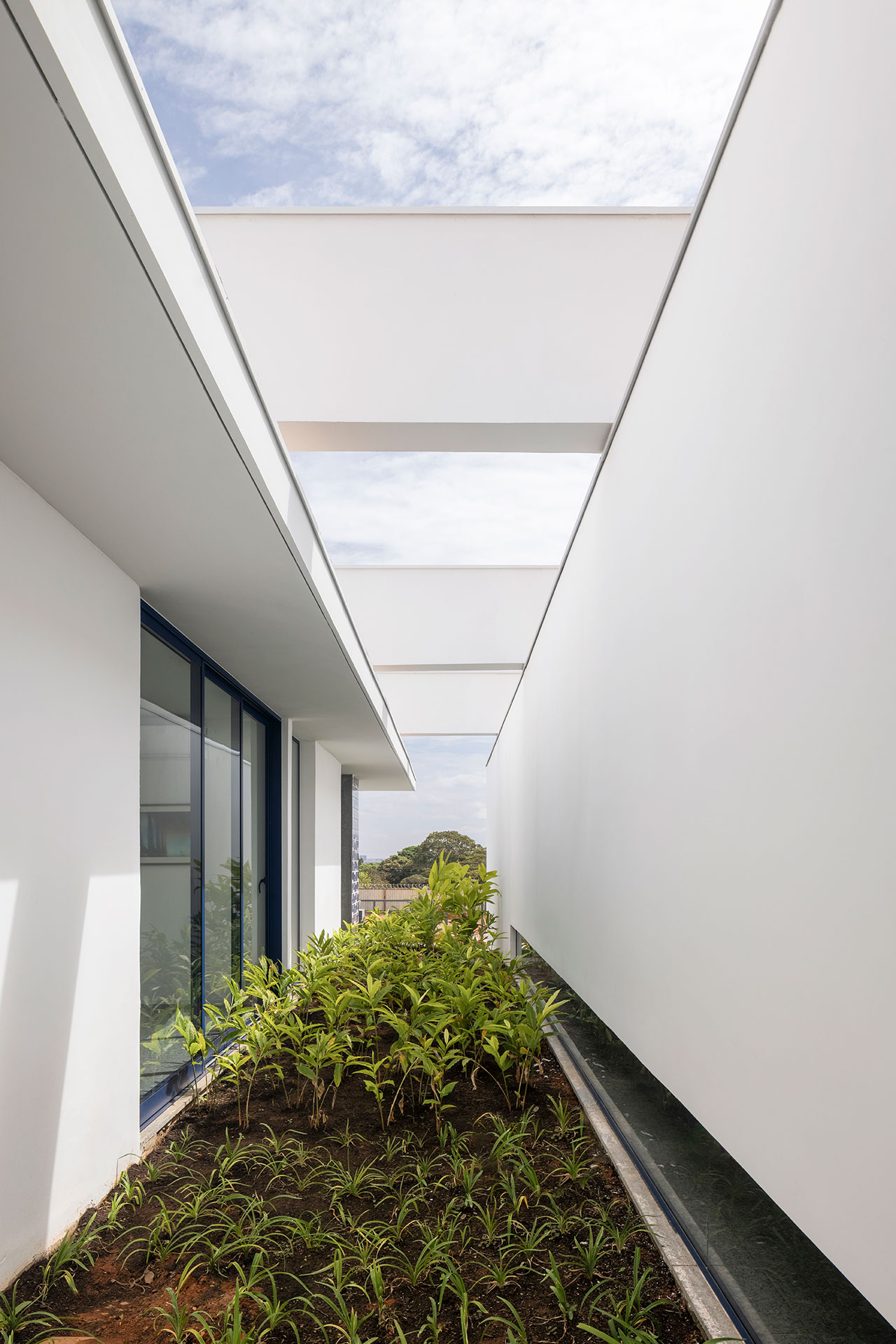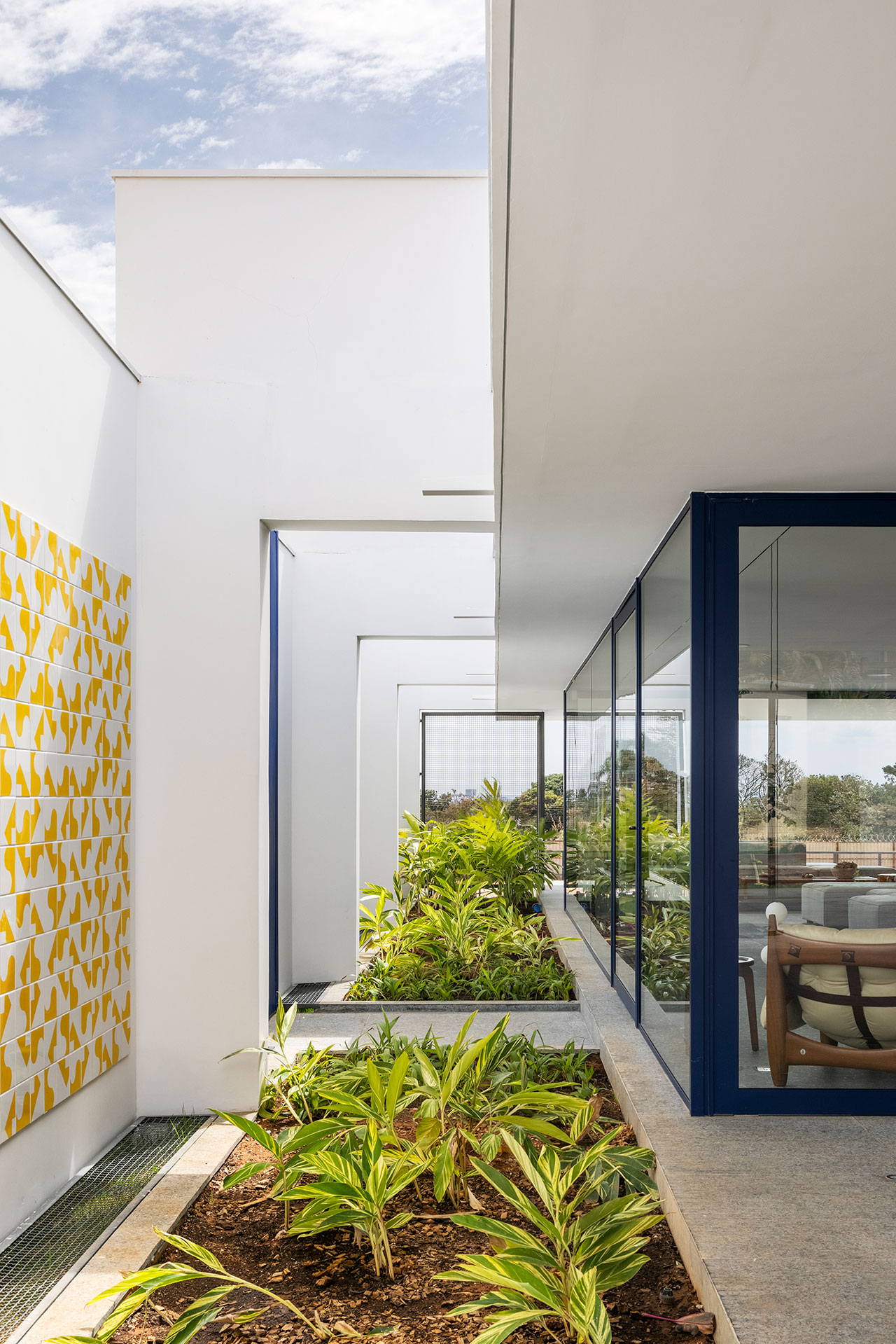 The story of Galeria House is also intertwined with the rich history of Brasília. An iconic Athos Bulcão panel, originally designed for a house by the legendary Oscar Niemeyer, finds a new home next to the internal linear garden at the entrance. The Foundation responsible for the artist’s work permitted the panel’s relocation.