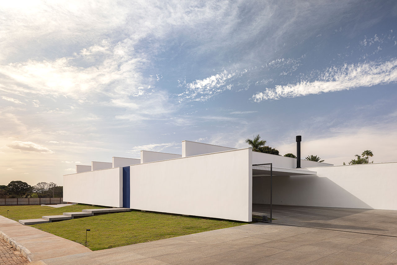 To protect the invaluable art pieces from the harsh Brazilian sun, the architects designed a large wall, slightly elevated from the floor that’s supported by the same pillars as the main beams. The element shields the entire space while allowing soft, diffused natural light to seep in through the open garden, creating a tranquil ambiance.