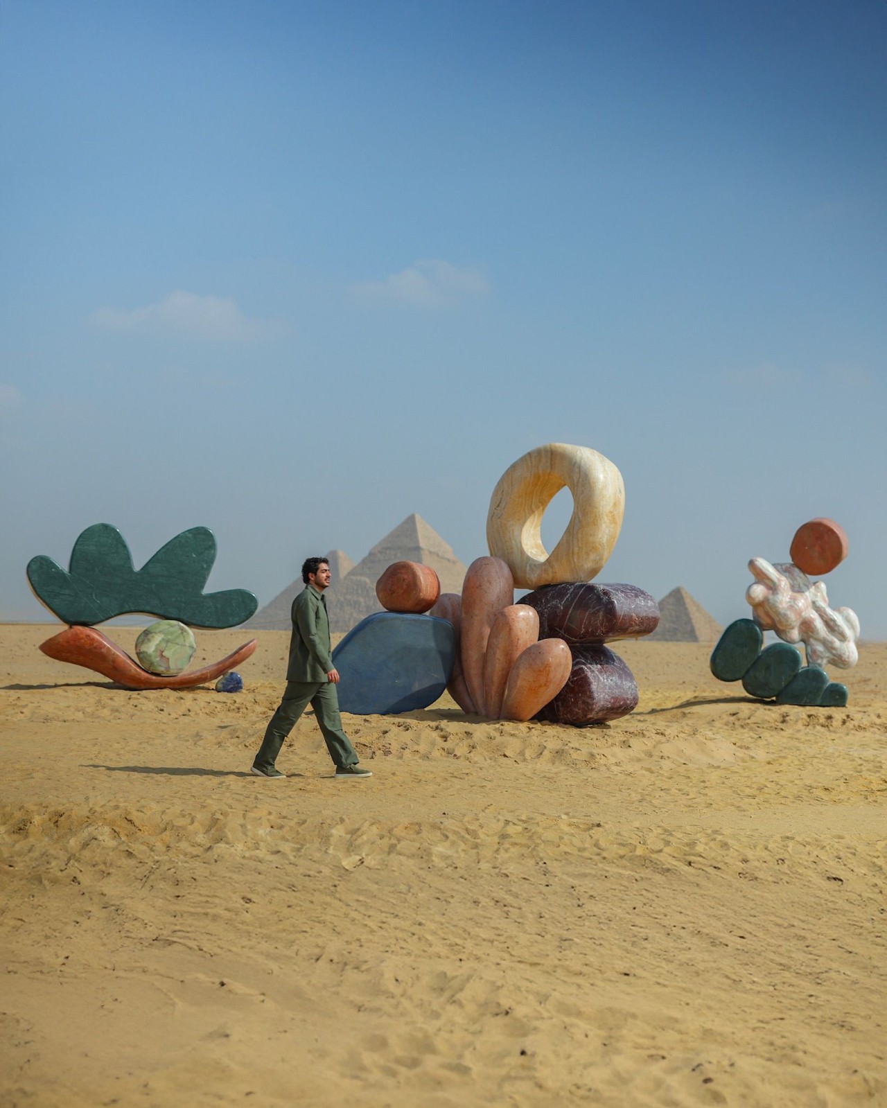 Speaking of shapes, nothing is as iconic as the Giza Pyramids in Egypt, which recently became the backdrop for Alex Proba’s newest installation in collaboration with SolidNature, Echoes of the Infinite. I think Alex is one of greatest contemporary artists of our time, and to see her technicolor work set against one of the oldest wonders of the world is the ultimate “past meets present” moment. AI could never.