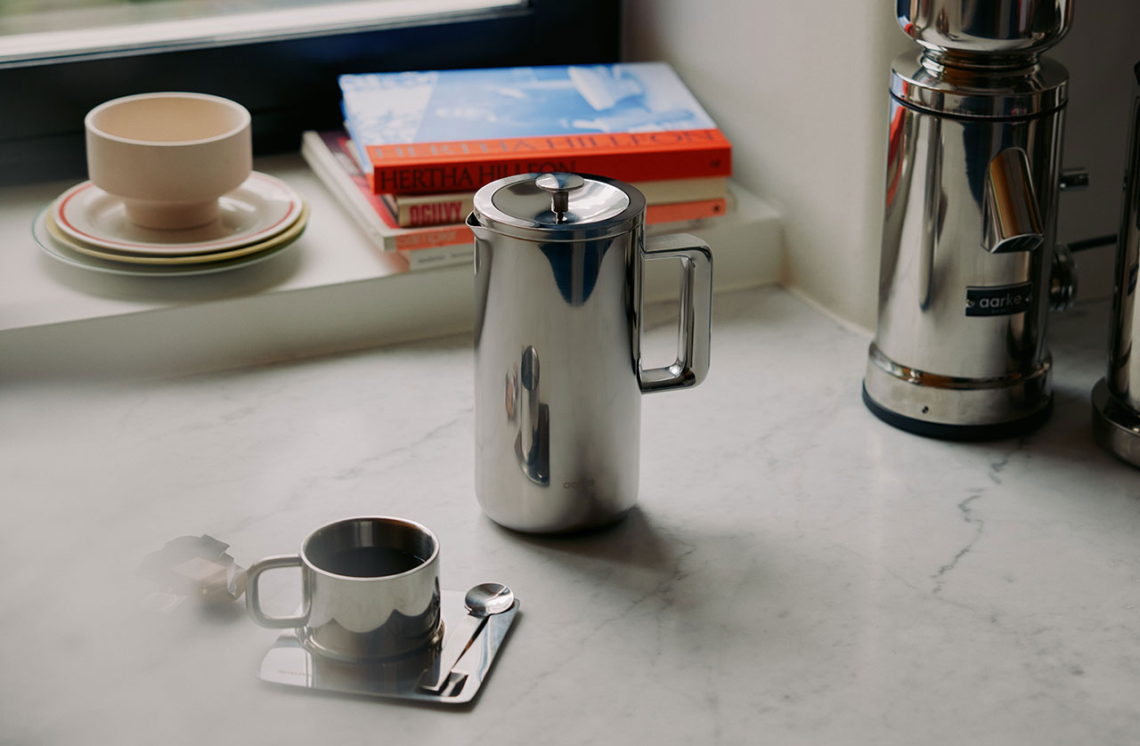 Coffee primed for perfection. The Aarke Coffee Press offers aesthetes a masterclass in minimalist design and precision engineering for the sake of savoring every sip. Crafted entirely from stainless steel, its double-walled, vacuum-insulated body keeps coffee hot for up to three hours while staying cool to the touch. Every detail – from the reusable mesh filter to the spill-free spout – is built for performance, longevity, and effortless ritual. Compact yet uncompromising, it’s dishwasher-safe, tool-free to disassemble, and designed to elevate the coffee-making experience from brew to countertop display.
