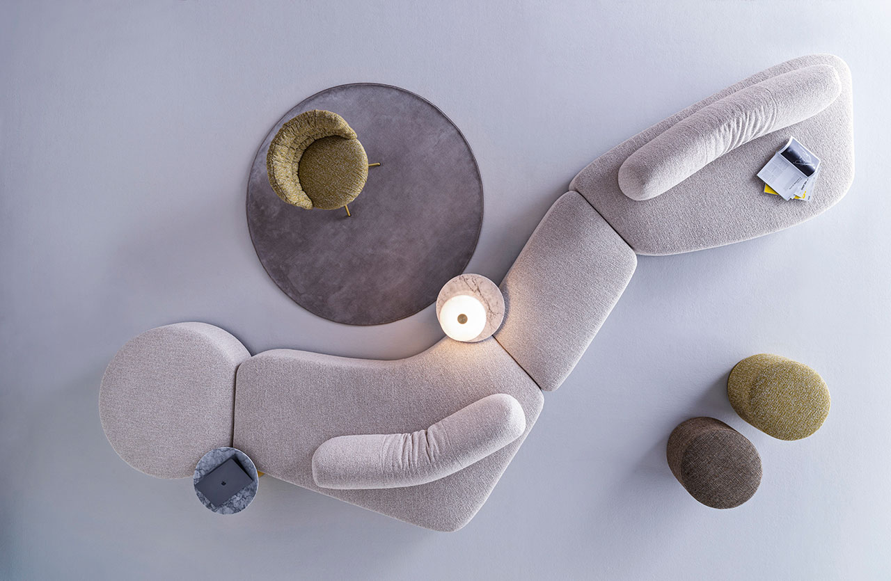 Designed by Studio Gherardi, the Flow modular seating series, featuring 12 mix-and-match components, is all about creative freedom and flexibility. A departure from standard geometric forms, each element comes in a variety of irregular shapes. The large circular seat, for example, features one straight edge which enables it to rest flush against other modules, or to stand alone as an eye-catching chair.