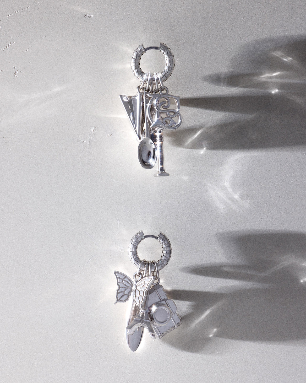 Notable elements in support of the charms include a hoop earring, flat chain, and bracelet allowing wearers to don pendants in a layered or mixed fashion. The collection also includes some preconceived, distinctive pieces in the form of rings, bracelets, and earrings, such as the